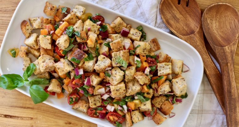 If you’re anything like me, you crave bread. And if you can pair that bread with a really yummy salad, well, that’s pretty darn amazing. Perhaps that’s why I love panzanella so much! Pan-za-WHAT? Oh, you don’t know about it? Well, let me introduce you!